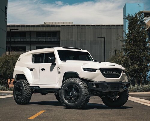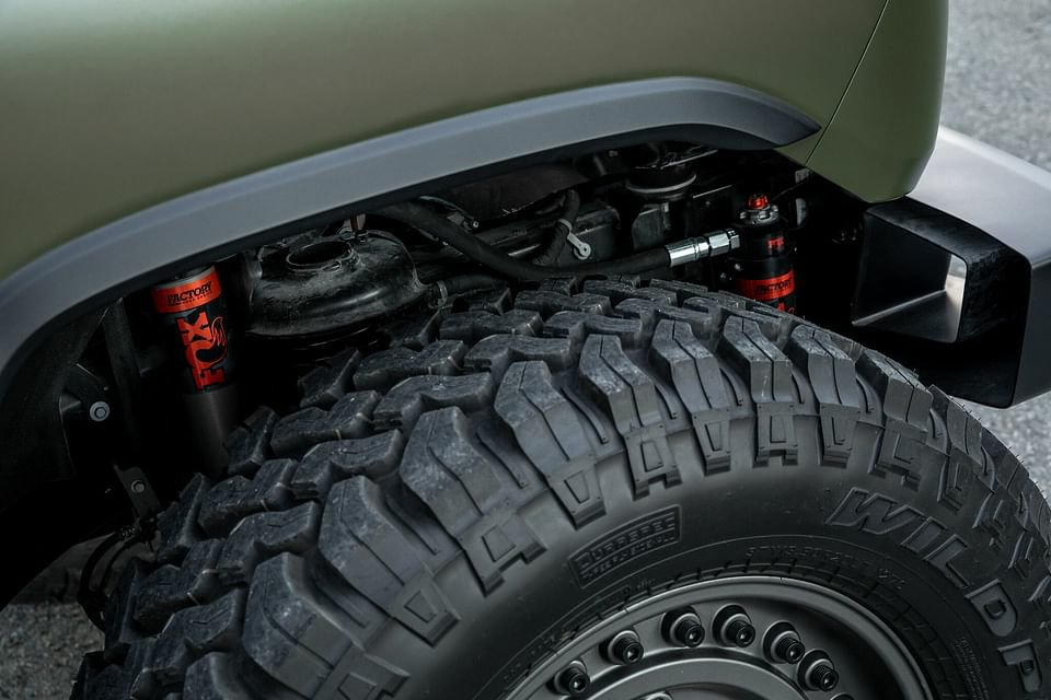 In the US, the US$155,000 ($223,000) base model Tank is fitted with a 213kW 3.6-litre V6, a 4.0-inch (102mm) lift kit with Fox shocks, and chunky off-road tyres as standard.