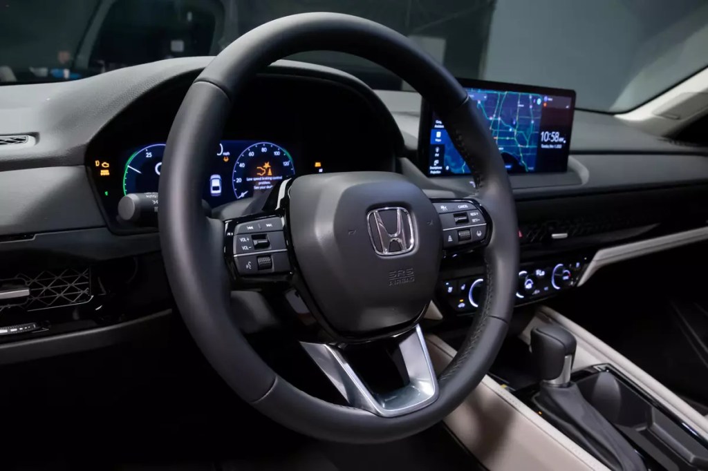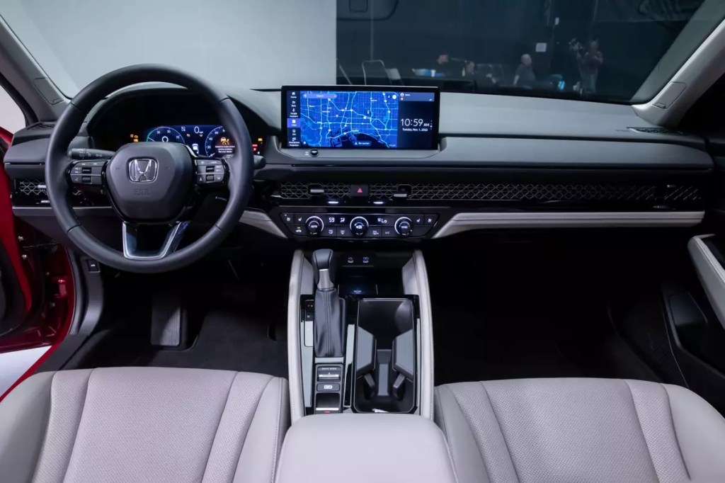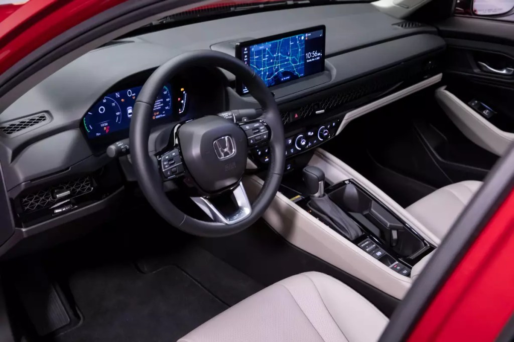 The new interior also incorporates some firsts for the Accord, such as a 10.2-inch digital gauge cluster that will be standard in all trim levels of the sedan. The multimedia touchscreen is a 7-inch unit with volume and tuning knobs in the LX and EX; all other trims get a massive new 12.3-inch screen with a volume knob (Honda won’t be burned on that again anytime soon) and wireless Apple CarPlay and Android Auto. Google Built-In will be standard in the top Touring trim, but the 12.3-inch touchscreen can be had without it. I’m not sold on the magic of Google Built-In, as it relies on solid data connections for the car or the user’s phone to use some of the car’s voice-command functions. No data, no functions, in some cases. If you live somewhere rural or with poor data connectivity, Google Built-In can be a problem.