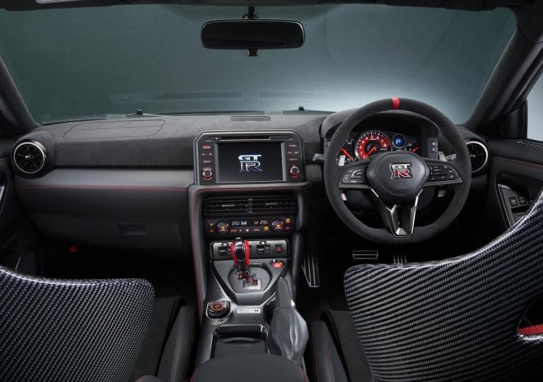 For the 2024 model year, Nissan GT-R Nismo is even more exciting with in-depth enhancements to its aerodynamic performance, the return of a special trim and revised available packages. The 600-horsepower GT-R NISMO offers an even more exceptional level of performance, with engineering drawn directly from motorsports. The 2024 Nissan GT-R NISMO arrives at select U.S. Nissan dealers in summer 2023. On GT-R NISMO, a new rear wing design sits atop dramatic, swan neck-style supports. With an almost 10% larger surface area, the wing’s curvature has been specifically designed to optimize drag and downforce. The team also revised GT-R NISMO’s front lip, rear diffuser and canards. Newly available on GT-R NISMO is a NISMO Appearance Package, which includes an exclusive, red-accented version of the car’s RAYS forged 20-inch wheels, a unique clear coat applied to the carbon fiber hood and an exclusive engine cover design.NISMO-exclusive bodywork helps provide increased component cooling while also improving aerodynamic downforce. The roof is made from carbon fiber to reduce weight and lower the car’s center of gravity, paying dividends in terms of handling. Additional NISMO-exclusive carbon fiber body panels include front and rear fascias, trunk lid, race-inspired rear wing, side sill covers, hood and outside mirror housings. Complementing NISMO’s improved power and grip are Brembo® brakes with enlarged, carbon-ceramic rotors measuring 16.1 inches in the front and 15.3 inches at the rear. The rotors themselves save 36 pounds of weight, while the high-strength calipers and high-friction brake pads contribute to a firmer brake pedal feeling. Inside, GT-R NISMO includes interior enhancements include Recaro® seats with synthetic suede inserts, red stitching and an Alcantara-appointed steering wheel with a red top stripe.